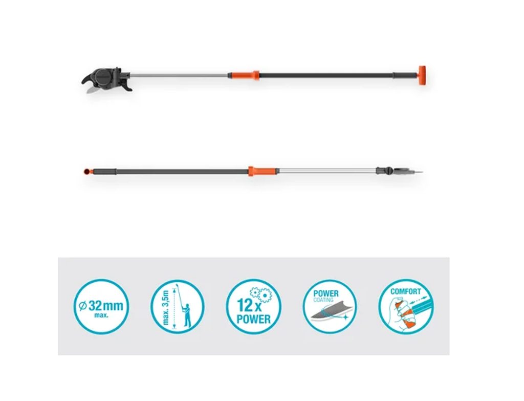 Nože sú vybavené špeciálnym povlakom GARDENA PowerCoating, ten znižuje trenie, zvyšuje efektivitu strihu a uľahčuje čistenie nožov. Zároveň chráni nože pred koróziou. Napriek tomu, že StarCut Pro S ponúka skvelý dosah, je navrhnutý s ohľadom na maximálne pohodlie užívateľa. Spodná rukoväť s vylepšeným ergonomickým dizajnom a rukoväťou v tvare T zaisťuje pevný úchop a lepšiu stabilitu. Uhol strihu je možné jednoducho nastaviť v rozsahu 200° priamo zo zeme, čo uľahčuje prácu. class="pb-2">Približný dosah až 3,5 m - vhodné pre malé až stredne veľké stromy