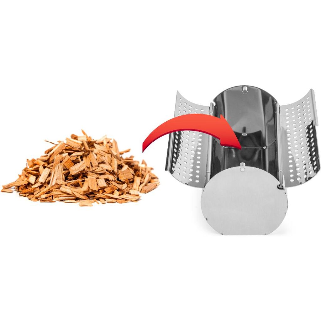 Použitie je veľmi jednoduché – najprv stačí namočiť drevené štiepky, potom ich vložiť do údiaceho boxu a následne box umiestniť do grilu. Počas grilovania sa začne uvoľňovať príjemná dymová aróma, ktorá dodá mäsu, rybám, syrom aj zelenine výraznejší a chutnejší charakter.
