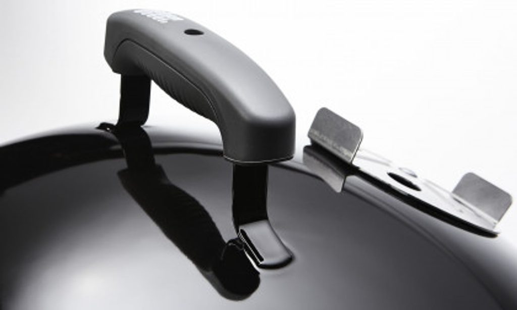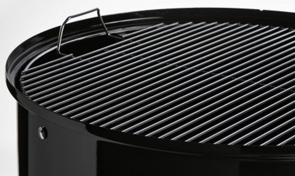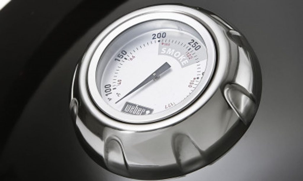 V poklope je teplomer pre kontrolu správnej údiacej teploty, v spodnej časti potom masívny palivový rošt, 3 otvory pre reguláciu prívodu a 3 otvory pre reguláciu prívodu lupienkov. To všetko s priemerom 57 cm.