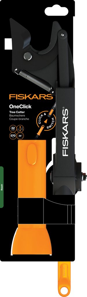 Jednočepeľové nožnice na konáre Fiskars OneClick sú určené na strih suchého a tvrdého dreva. Vďaka konštrukcii s opornou čeľusťou sú vhodné na presné prerezávanie a zvládajú konáre až do priemeru 32 mm. Pri použití s teleskopickou násadou umožňujú bezpečne pracovať aj vo výškach bez rebríka.