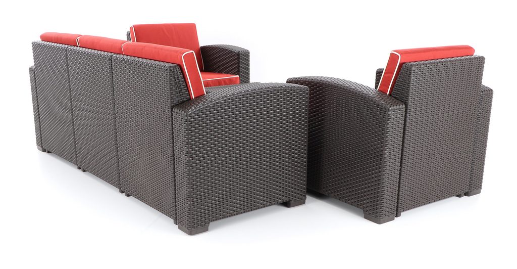 Vneste do svojej záhrady či na terasu sviežu eleganciu s exkluzívnou záhradnou zostavou Portoriko red DeLuxe VeGA. Nábytok vyniká originálnou povrchovou štruktúrou, ktorá verne napodobňuje prírodný ratan, a pútavými červenými poduškami na hnedej konštrukcii. Vďaka atraktívnemu dizajnu vytvoríte v exteriéri aj pri bazéne útulné miesto pre odpočinok aj stretnutie s priateľmi.