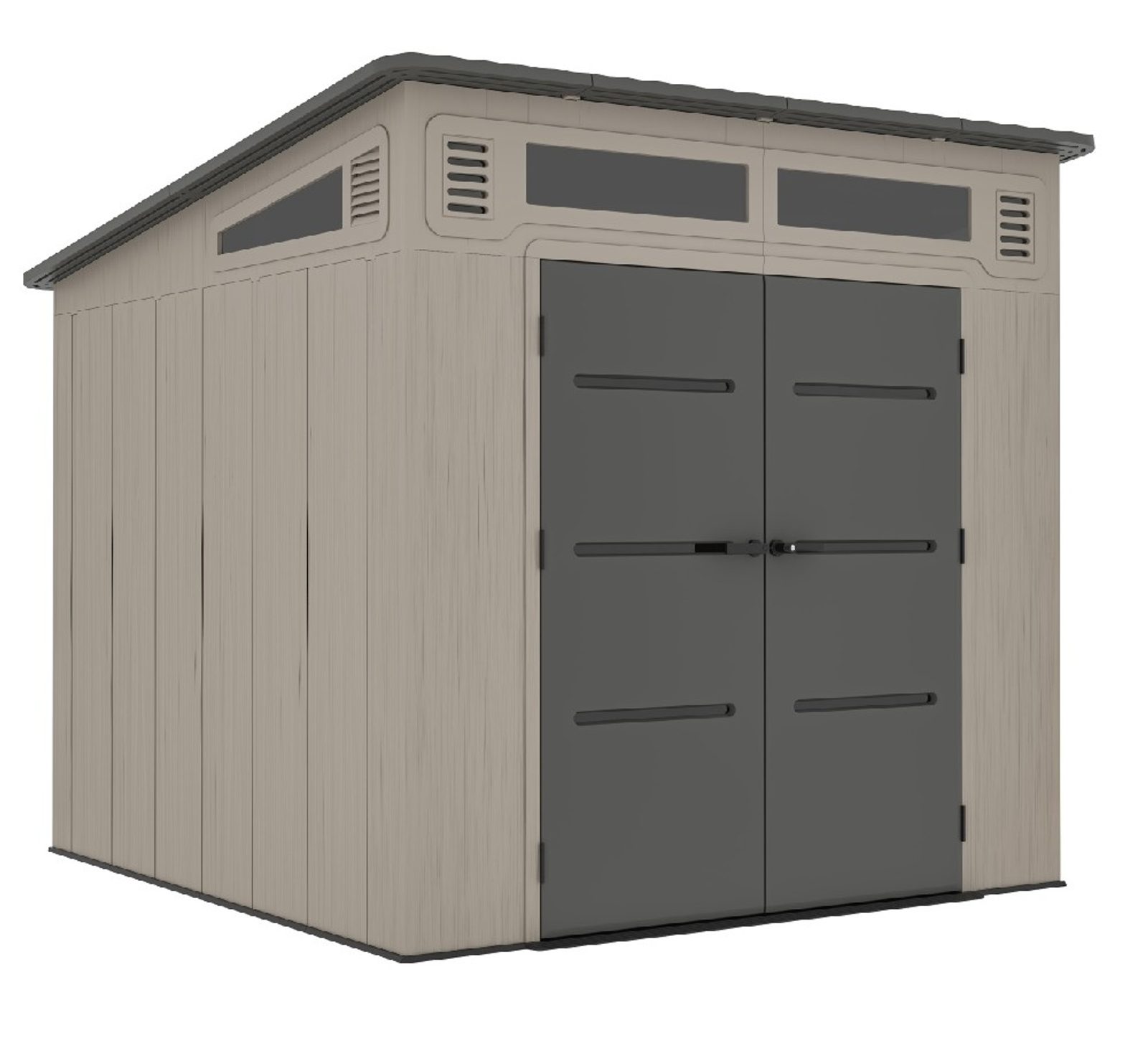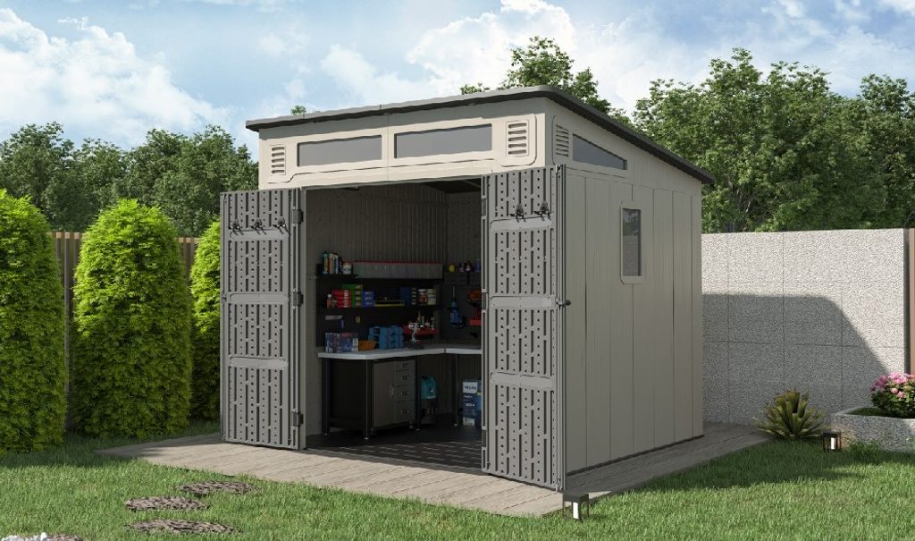 Súčasťou domčeka je tiež pevná plastová podlaha, ktorá chráni uložené vybavenie pred vlhkosťou a blatom a umožňuje bezpečné umiestnenie aj ťažších predmetov. O vhodné podmienky vo vnútri sa stará ventilačný systém na dvoch stranách, ktorý podporuje účinnú cirkuláciu vzduchu a prispieva k lepšej vnútornej klíme, vetracie otvory sú navyše vybavené sieťou proti hmyzu.