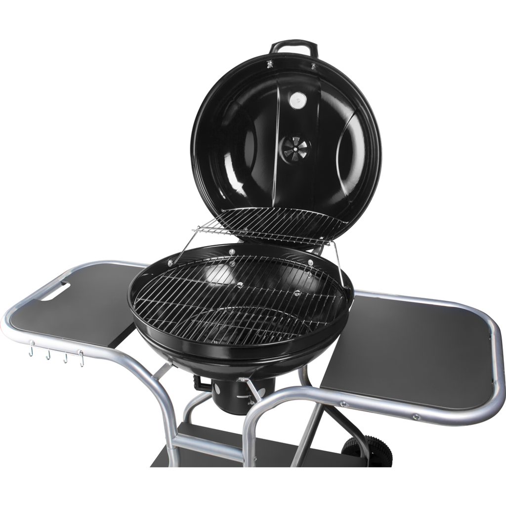 Gril na drevené uhlie FIELDMANN FZG 1014 v čiernom prevedení predstavuje ideálneho parťáka na vonkajšie grilovanie pre rodinu i návštevy. Vyznačuje sa stabilnou konštrukciou a dostatočne veľkou grilovacou plochou s priemerom 54 cm, navyše s veľmi praktickým rozšírením o odkladaciu plochu po oboch stranách.