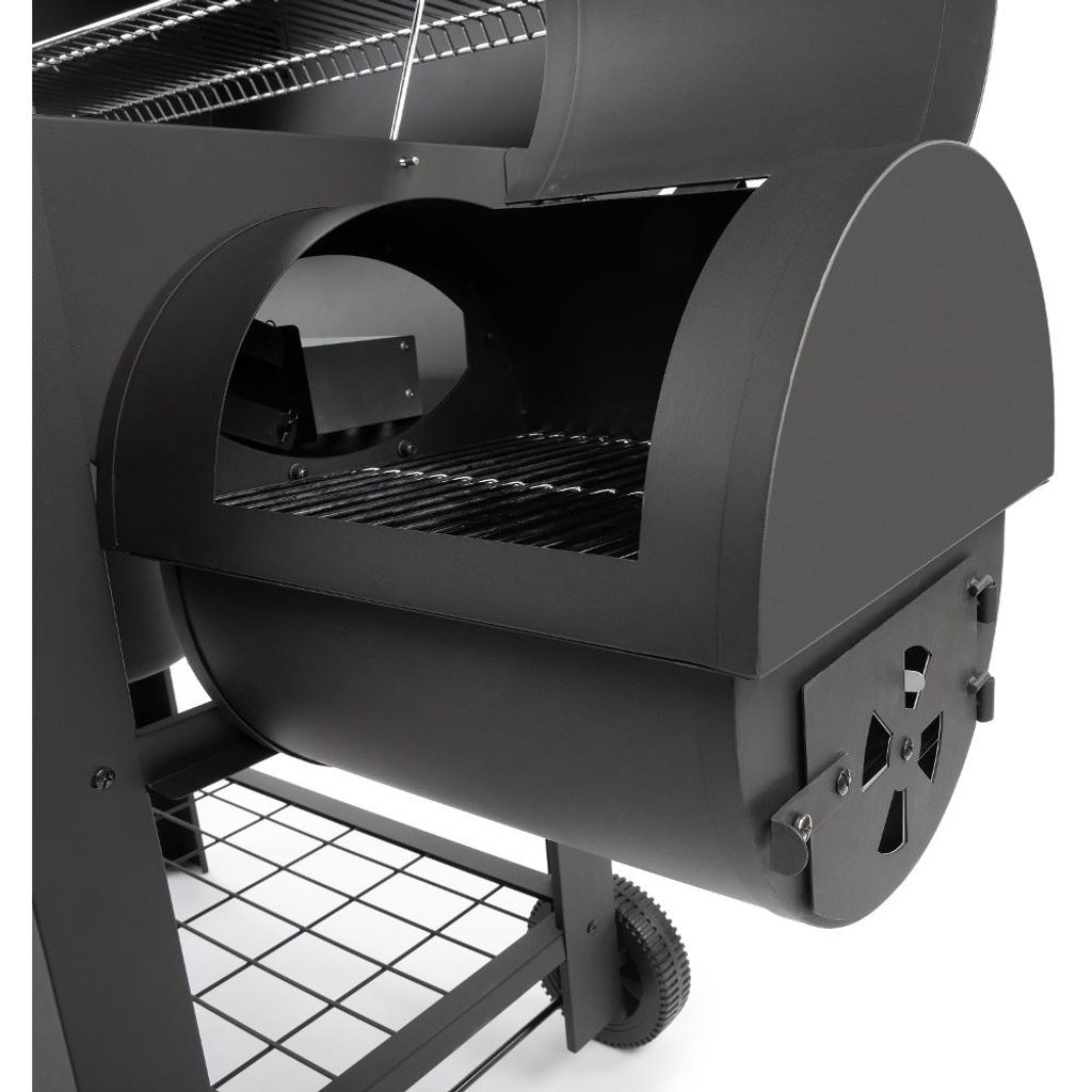 Súčasťou zariadenia je aj samostatná údiarenská komora s rozmermi 36 × 31 cm, ktorá umožňuje pomalé údenie mäsa, rýb alebo syrov pri stabilnej teplote. Oddelená komora podporuje rovnomerné prúdenie dymu a pomáha vytvárať autentickú chuť údených pokrmov.