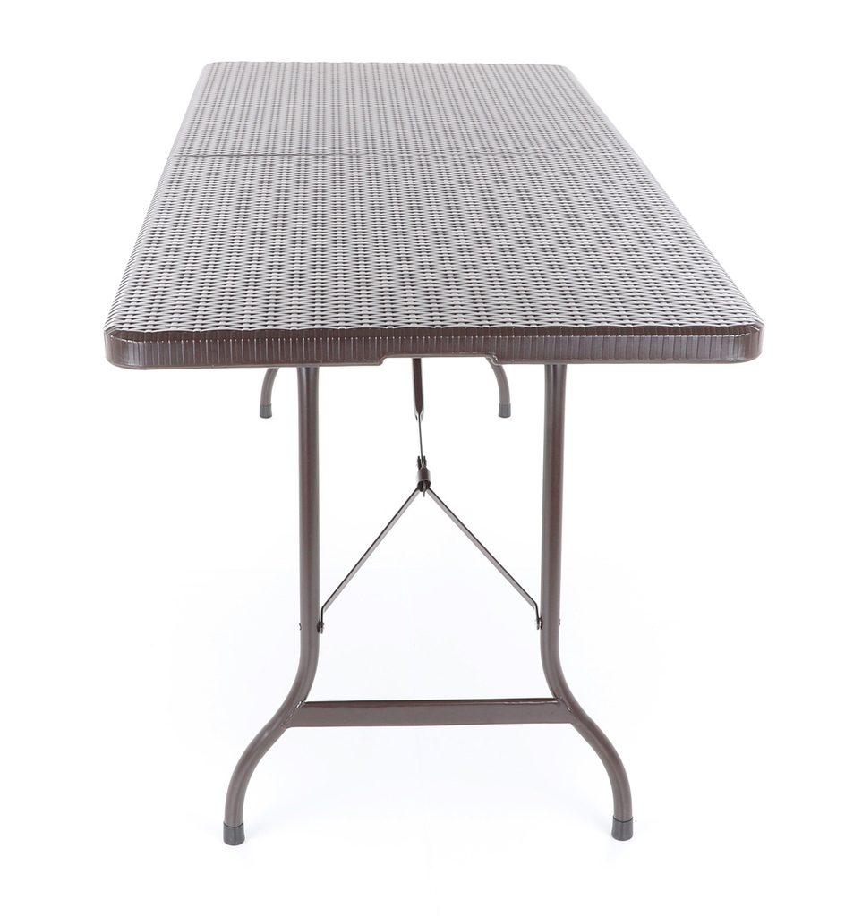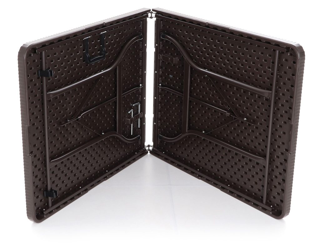 Tento skladací stôl je ideálnou voľbou pre každú záhradu, terasu aj balkón. Doska z umelého ratanu vyniká moderným vzhľadom, dlhou životnosťou a mimoriadnou odolnosťou voči poveternostným vplyvom. Na rozdiel od dreveného nábytku nevsakuje tekutiny, takže nehrozí deformácia, hniloba ani vznik plesní. Vďaka nízkej hmotnosti konštrukcie sa stôl ľahko prenáša aj skladuje, čo oceníte nielen pri sezónnom upratovaní, ale aj pri sťahovaní.